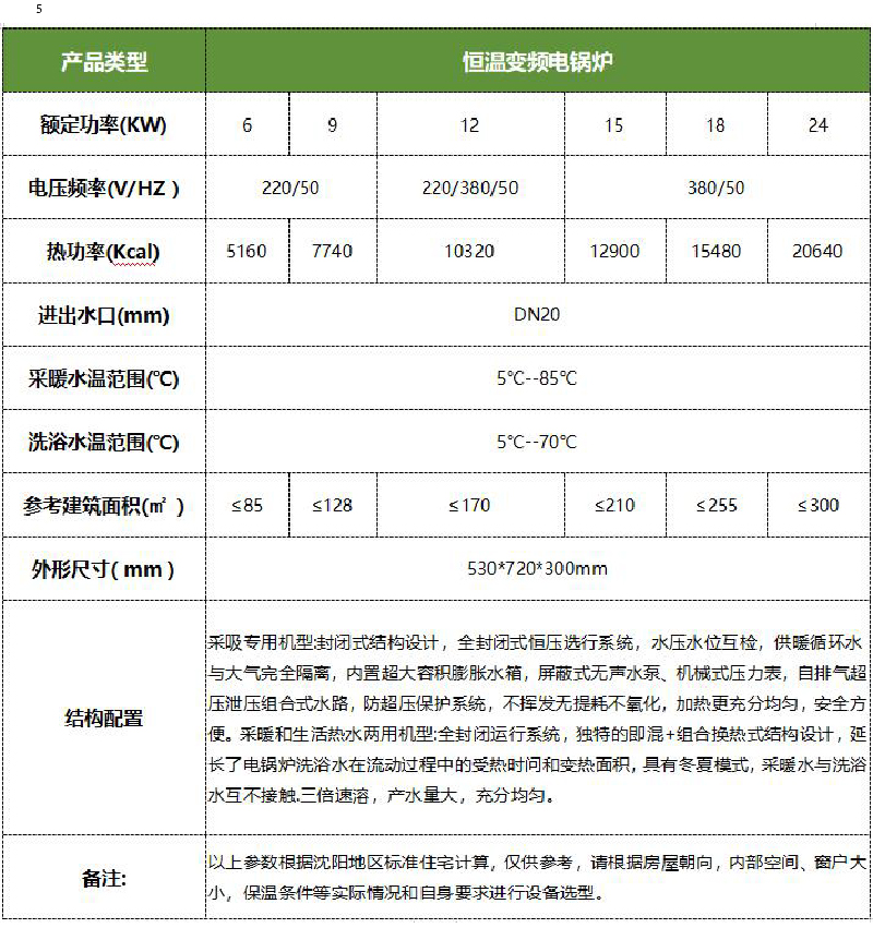 遠(yuǎn)鵬恒溫變頻電采暖爐,加熱系統(tǒng)根據(jù)用戶設(shè)定的溫度自動調(diào)節(jié)輸出功率(1%--100%),采暖水溫設(shè)定范圍5-85度,電壓變化時電功率恒定,全天恒溫運(yùn)行,滿足高標(biāo)準(zhǔn)高品質(zhì)采暖需求。